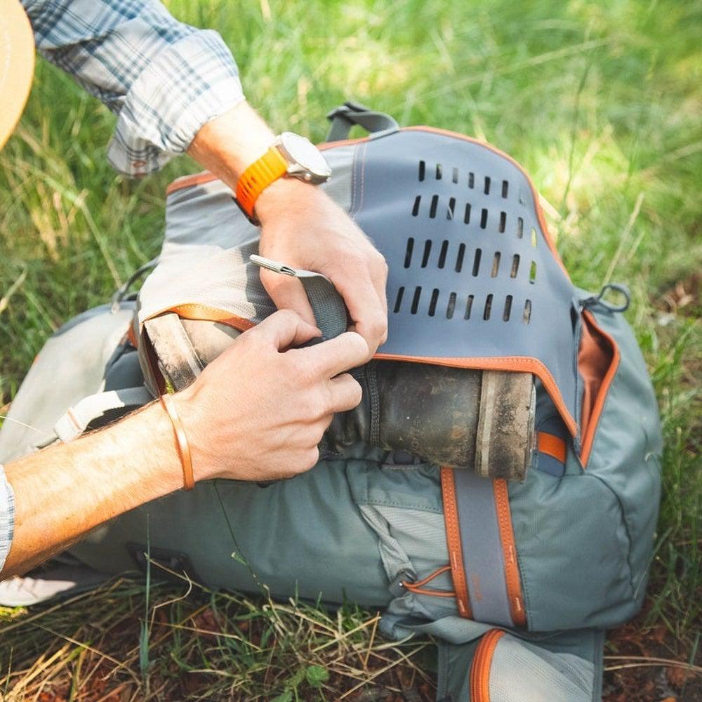 Some days your only shot at securing solitude is to put the parking lot in the rearview mirror. The Firehole Backpack will bring you there. This 26-liter platform features thoughtful organization, plenty of support and breathability, and an abundance of water storage for full days on the trail. Whether you’re tallying up the miles or just bushwacking to your favorite run, the recycled nylon exterior will withstand a beating, while keeping load-weight at a minimum. Loaded with exclusive features, including an exterior boot and wader pouch for wet gear, integrated net holders, and specialty attachments for your existing Fishpond Chest Pack, the Firehole is a favorite among backcountry anglers and travelers everywhere.