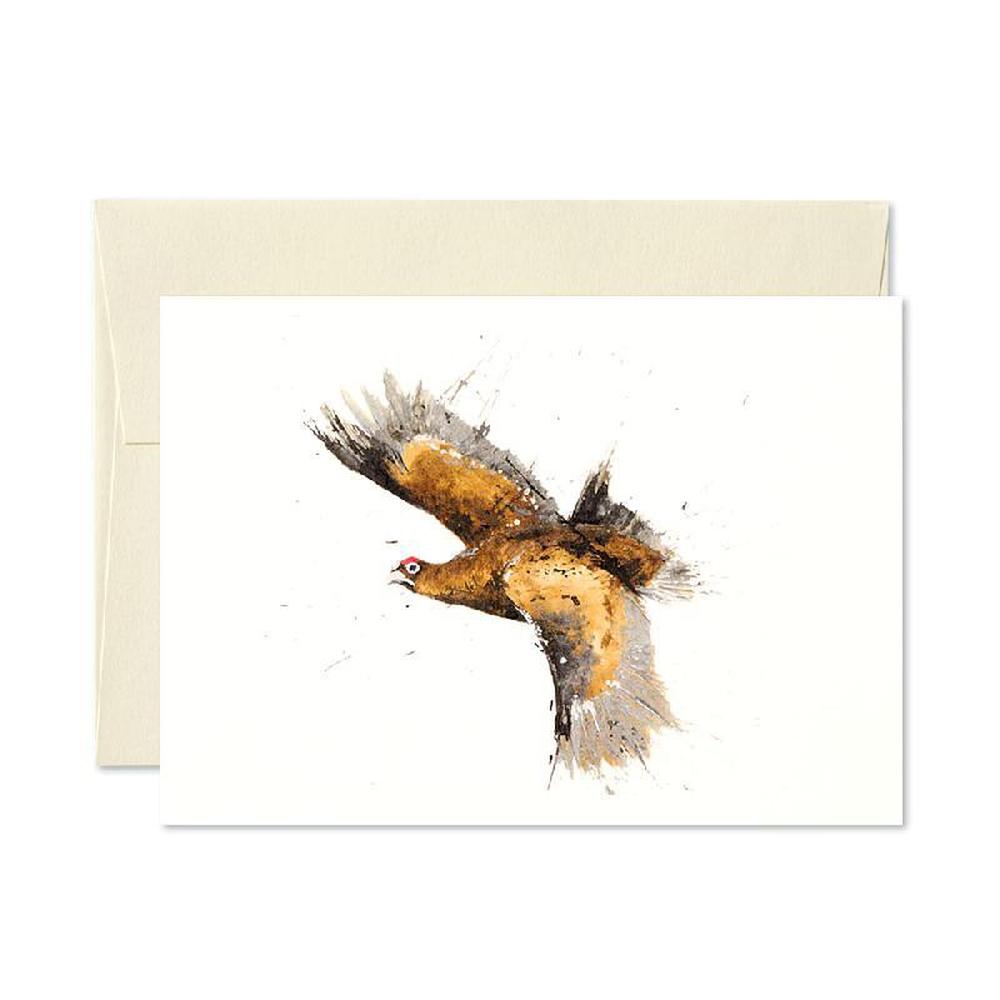 Individual greetings card with a flying grouse.